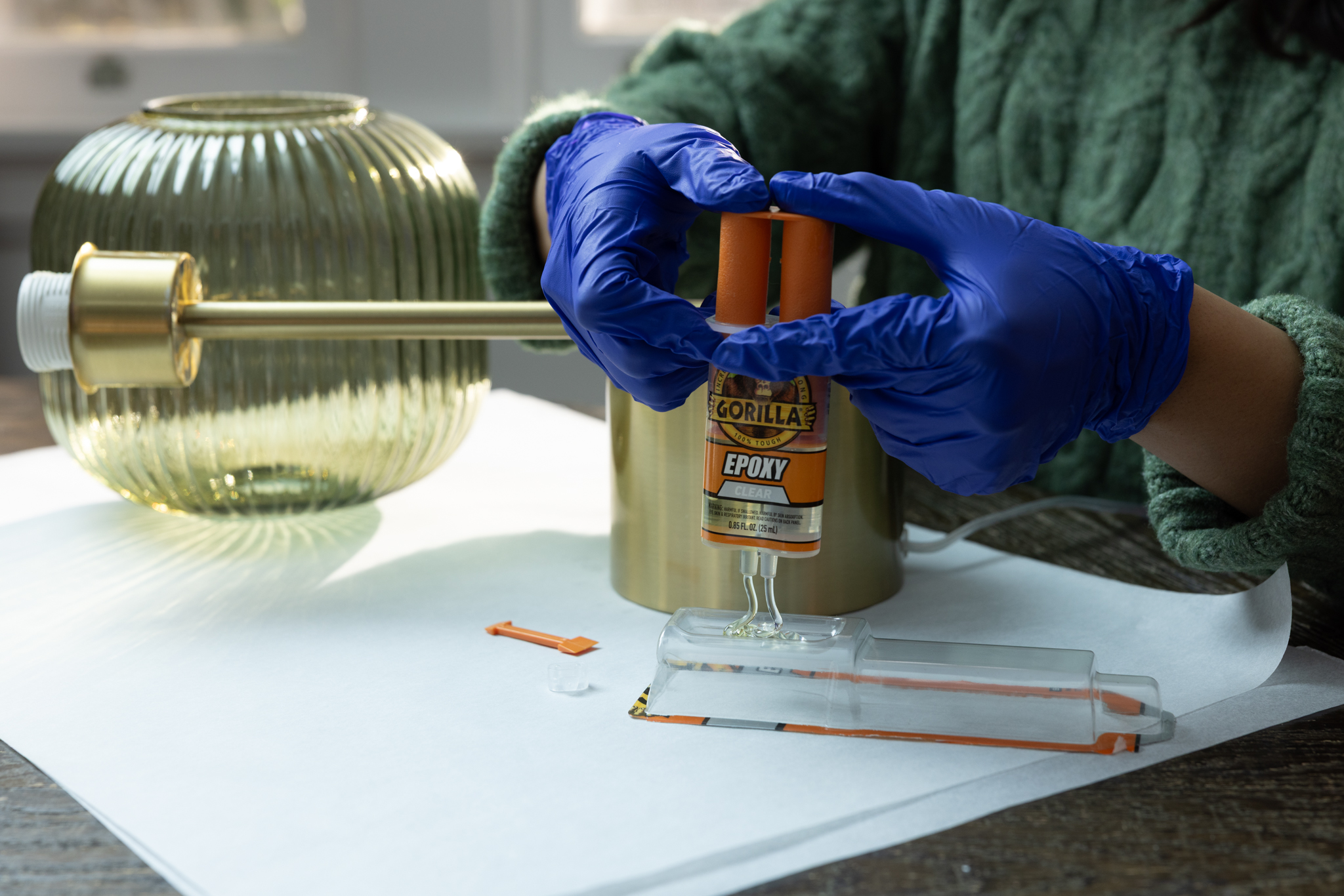 - We strongly recommend wearing gloves while working on any project using Gorilla Epoxy. If you do get Epoxy on your fingers or nails please follow these steps: