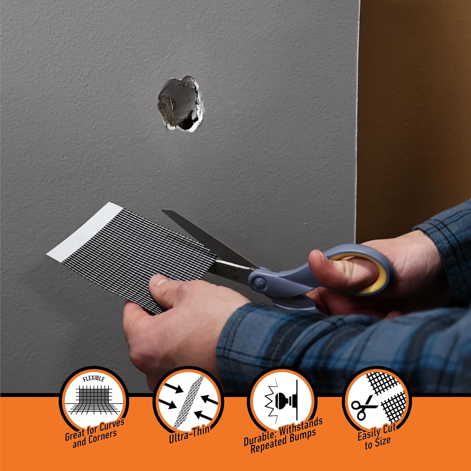 Gorilla Flexible Wall Repair Patch is the go-to solution for durable repairs on ceilings and drywall. The flexible, rubber patch is great for curves and corners and can easily be cut to size for your repair. The self-adhering patch is ultra-thin so once covered with spackling compound, it creates a professional-looking finished project.
