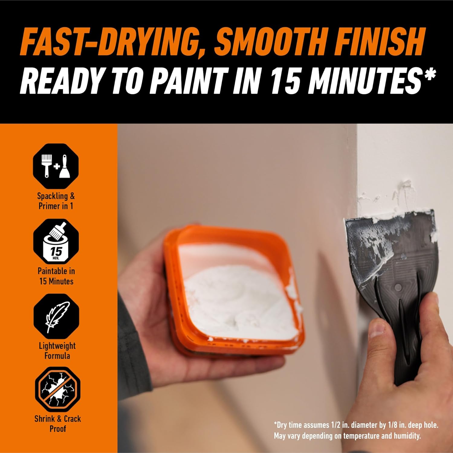 Gorilla High Performance Wall Repair Spackling + Primer is the go- to product for strong, durable repairs on walls, ceilings, cracks and both small and large holes. The lightweight formula is easy to spread, easy to control and doesn't sag, shrink or crack. Gorilla Wall Repair's smooth finish does not require sanding and paints like drywall for a professional looking finished project!