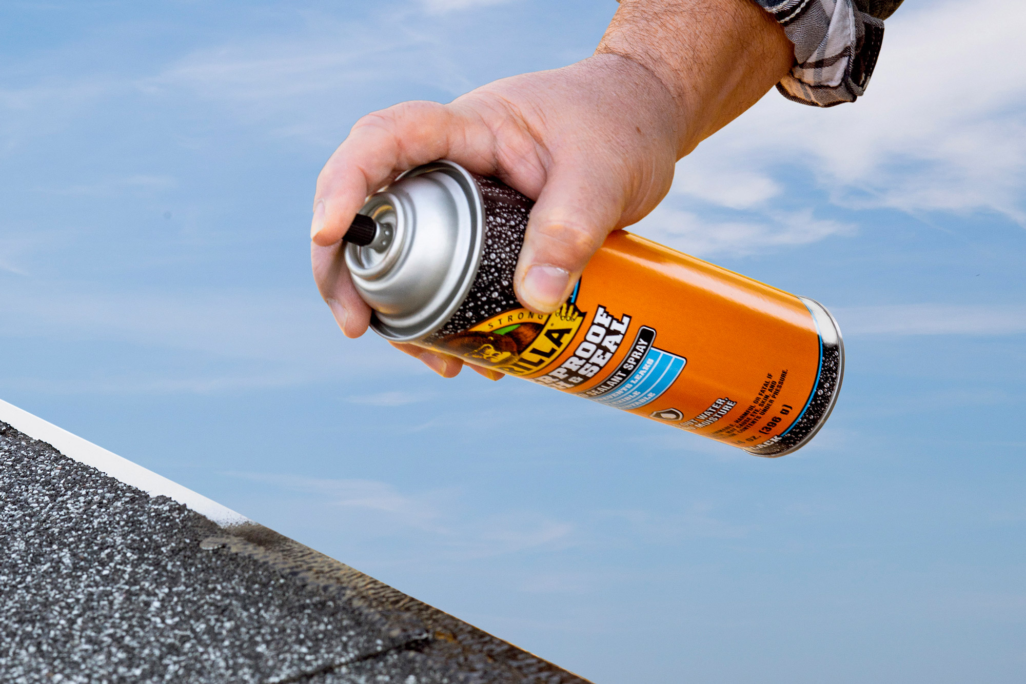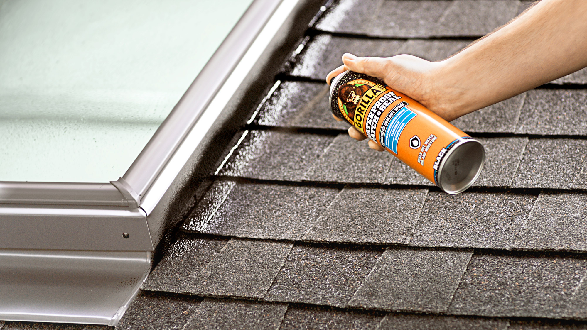 Gorilla Waterproof Patch & Seal Spray is designed to seal out water, air and moisture. Surfaces for use include, roofs, gutters, skylights, flashing, chimneys*, PVC joints, windows, RVs and other DIY projects. *Please note, this product is not intended for inside of firebox or chimney stack. It may not work for all types of plastics or rubbers.