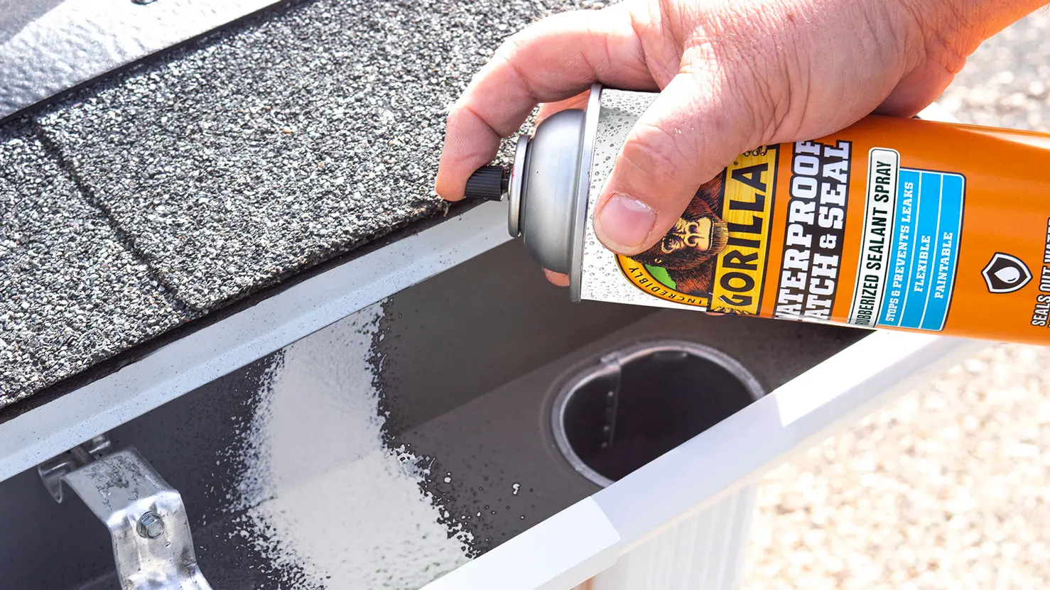 Gorilla Waterproof Patch & Seal Spray is designed to seal out water, air and moisture. Surfaces for use include, roofs, gutters, skylights, flashing, chimneys*, PVC joints, windows, RVs and other DIY projects. *Please note, this product is not intended for inside of firebox or chimney stack. It may not work for all types of plastics or rubbers.