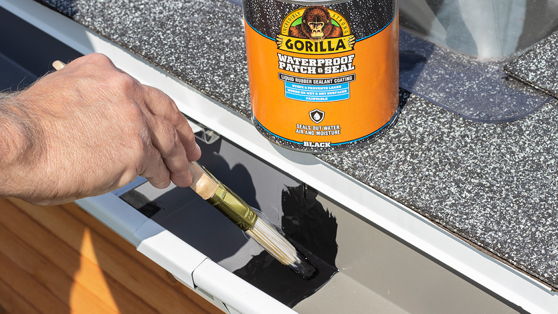 - Gorilla Waterproof Patch & Seal Liquid is designed to seal out water, air and moisture. Surfaces for use include roofs, gutters, skylights, flashing, chimneys*, PVC pipe joints, windows, RVs and other DIY Projects. *Please note, this product is not intended for inside of firebox or chimney stack. It may not work for all types of plastics or rubbers.