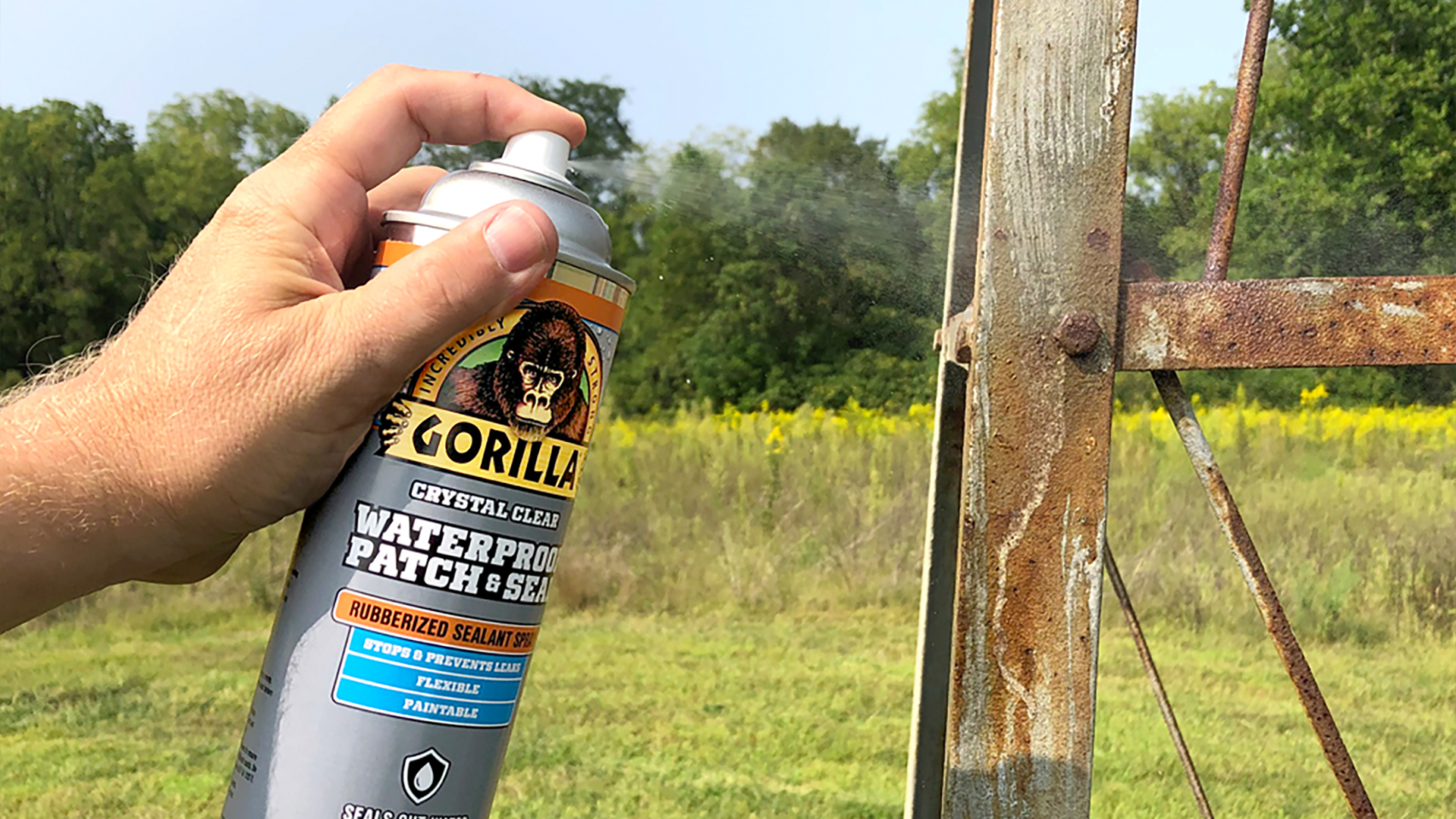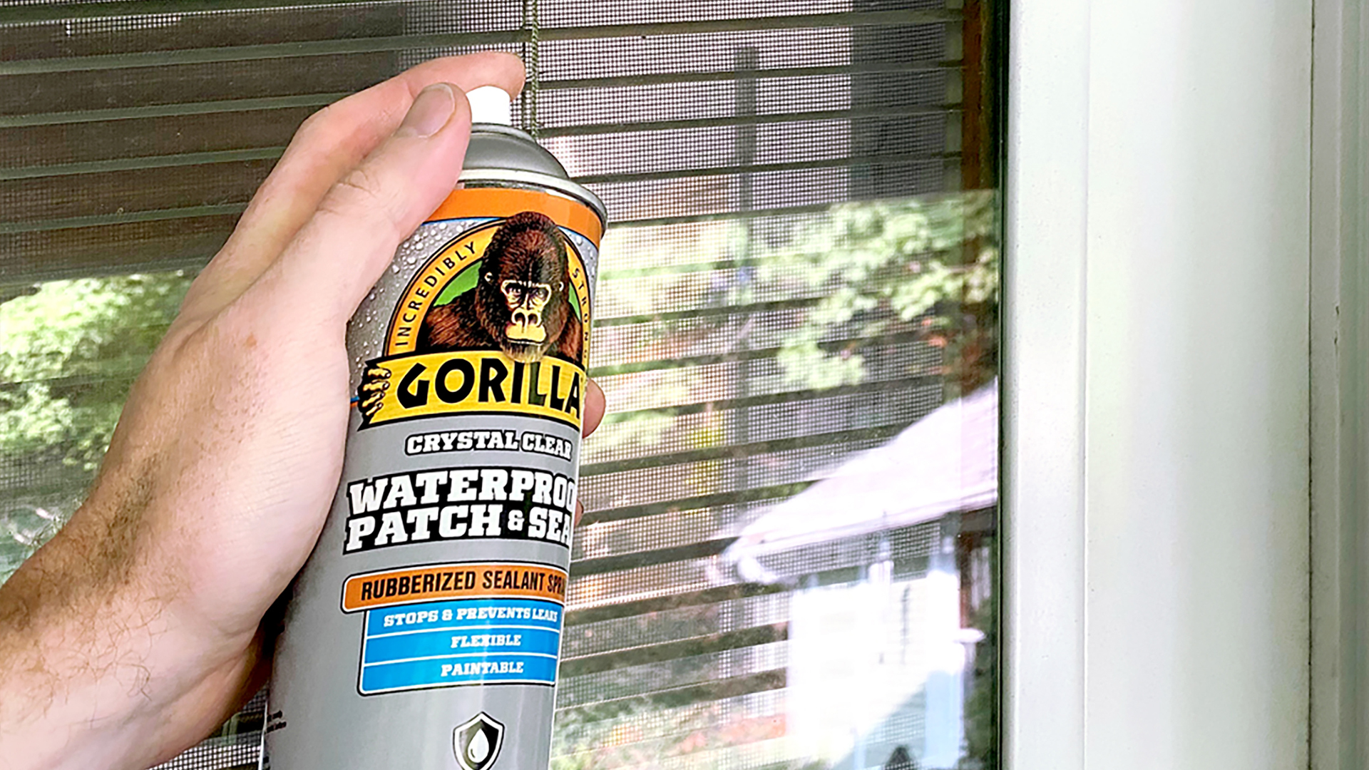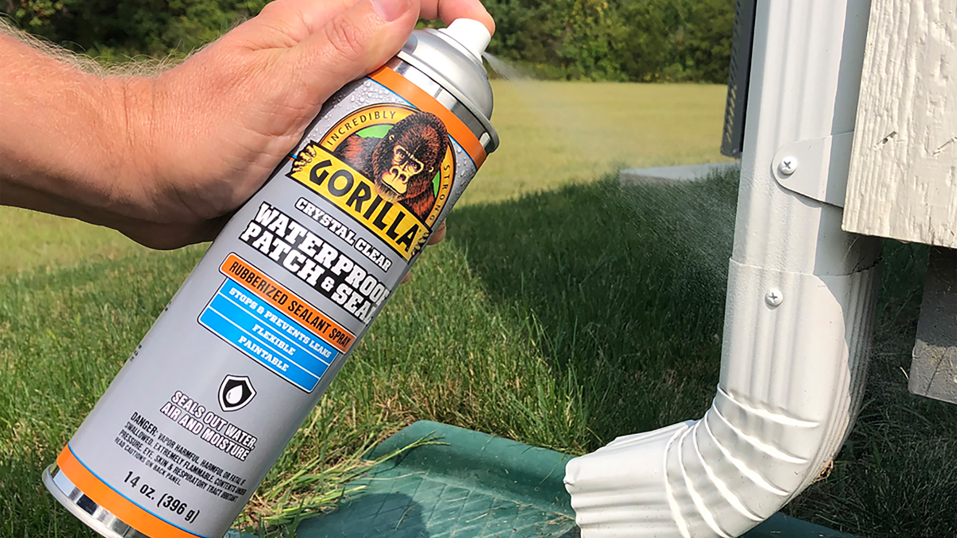 Gorilla Waterproof Patch & Seal Spray is designed to seal out water, air and moisture. Surfaces for use include, roofs, gutters, skylights, flashing, chimneys*, PVC joints, windows, RVs and other DIY projects. *Please note, this product is not intended for inside of firebox or chimney stack. It may not work for all types of plastics or rubbers.