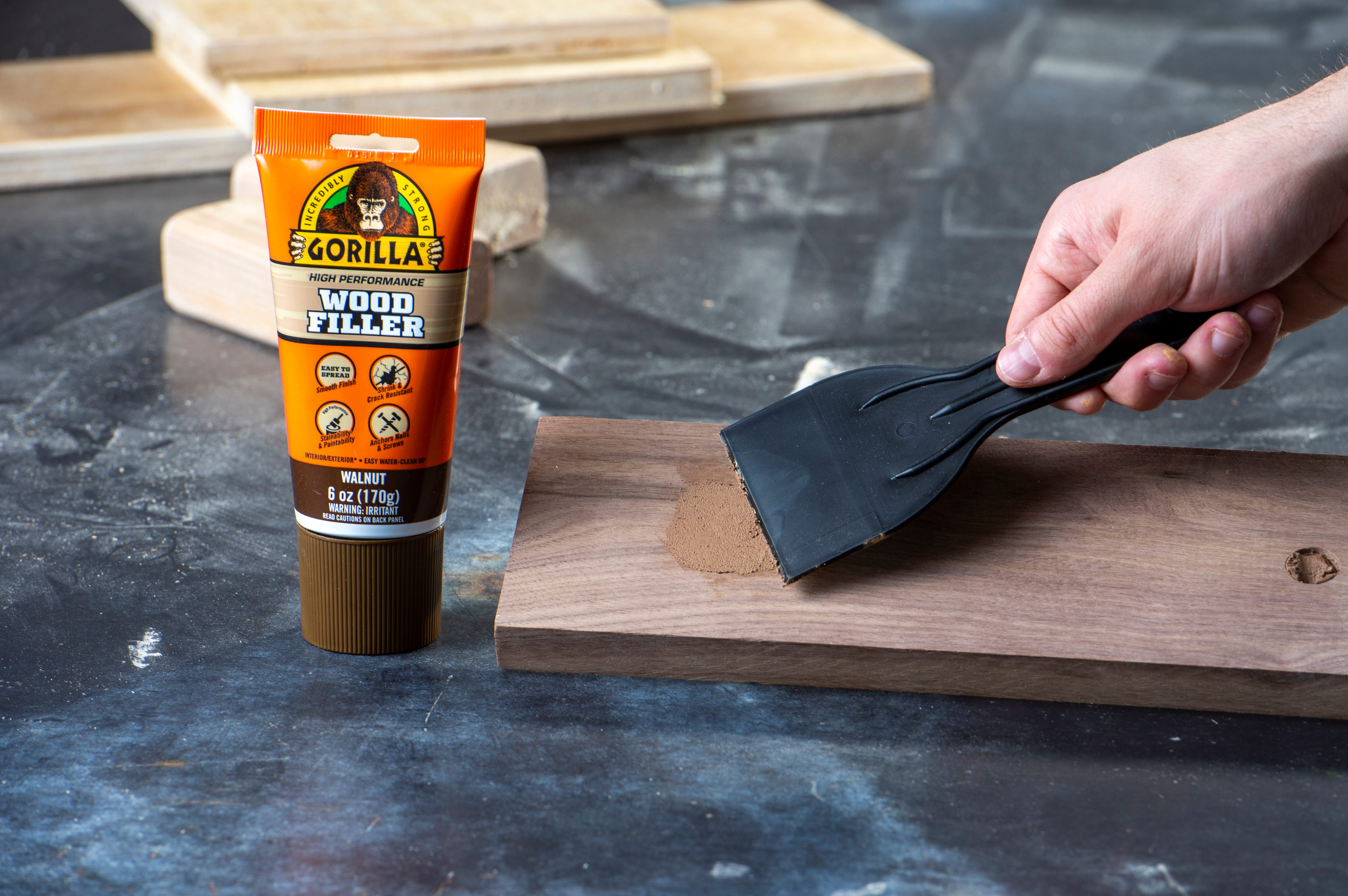 Gorilla High Performance Wood Filler is the go to product for strong, durable repairs on cracks, gouges and holes. The unique formula is easy to spread allowing for a smooth, natural finish. Its high performance stainability, paintability, and sandability provides you with a professional looking finished project!