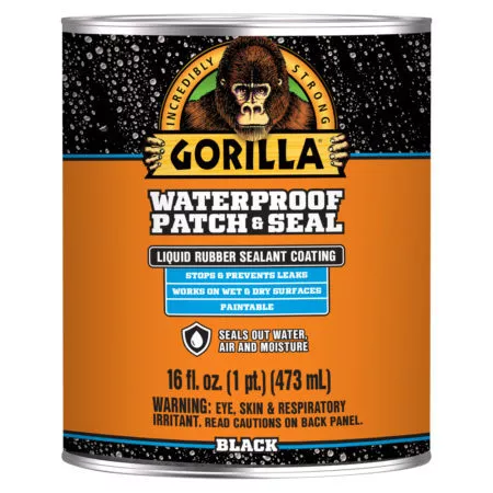 Gorilla Waterproof Patch & Seal Liquid is a flexible, rubberized coating that seals out water, air and moisture. Application is easy. It can be applied by brush, roll, trowel, dip or pouring. Once applied, the self leveling formula smoothly covers small gaps and cracks ensuring a watertight seal. When dried, Gorilla Waterproof Patch & Seal Liquid is paintable and temperature/UV resistant resulting in lasting repairs!